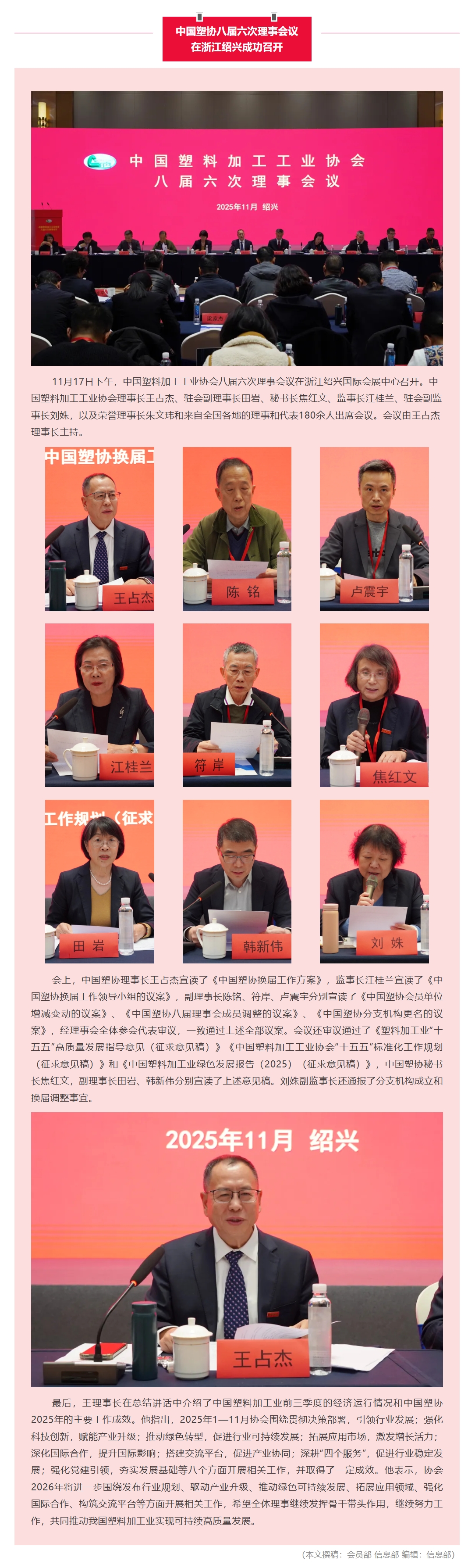 中国塑协八届六次理事会议在浙江绍兴成功召开
