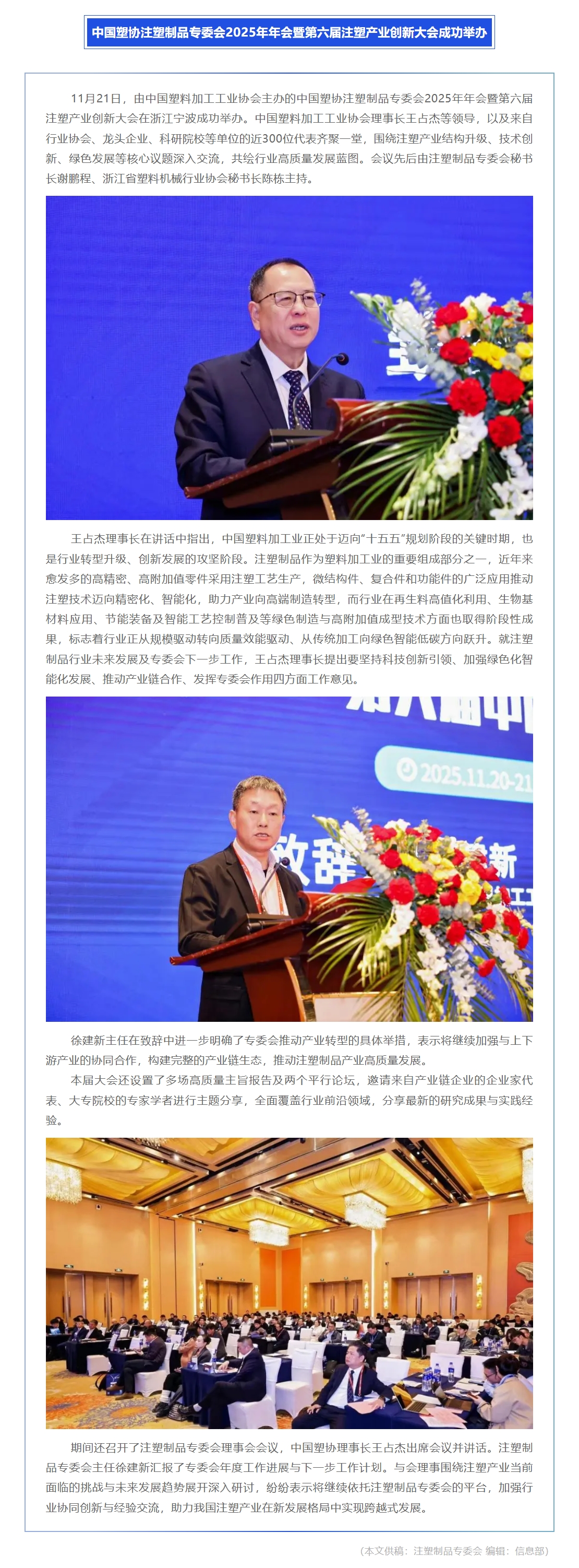 中国塑协注塑制品专委会2025年年会暨第六届注塑产业创新大会成功举办