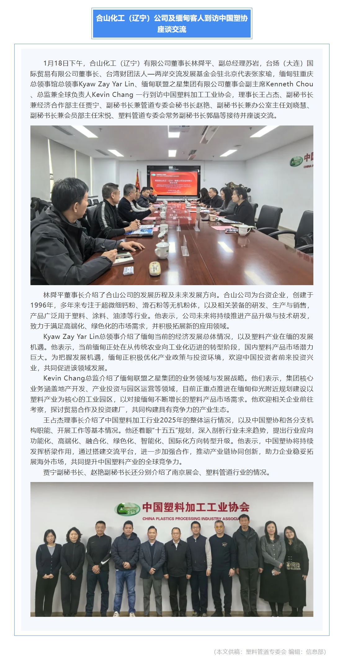 合山化工(辽宁)公司及缅甸客人到访中国塑协座谈交流