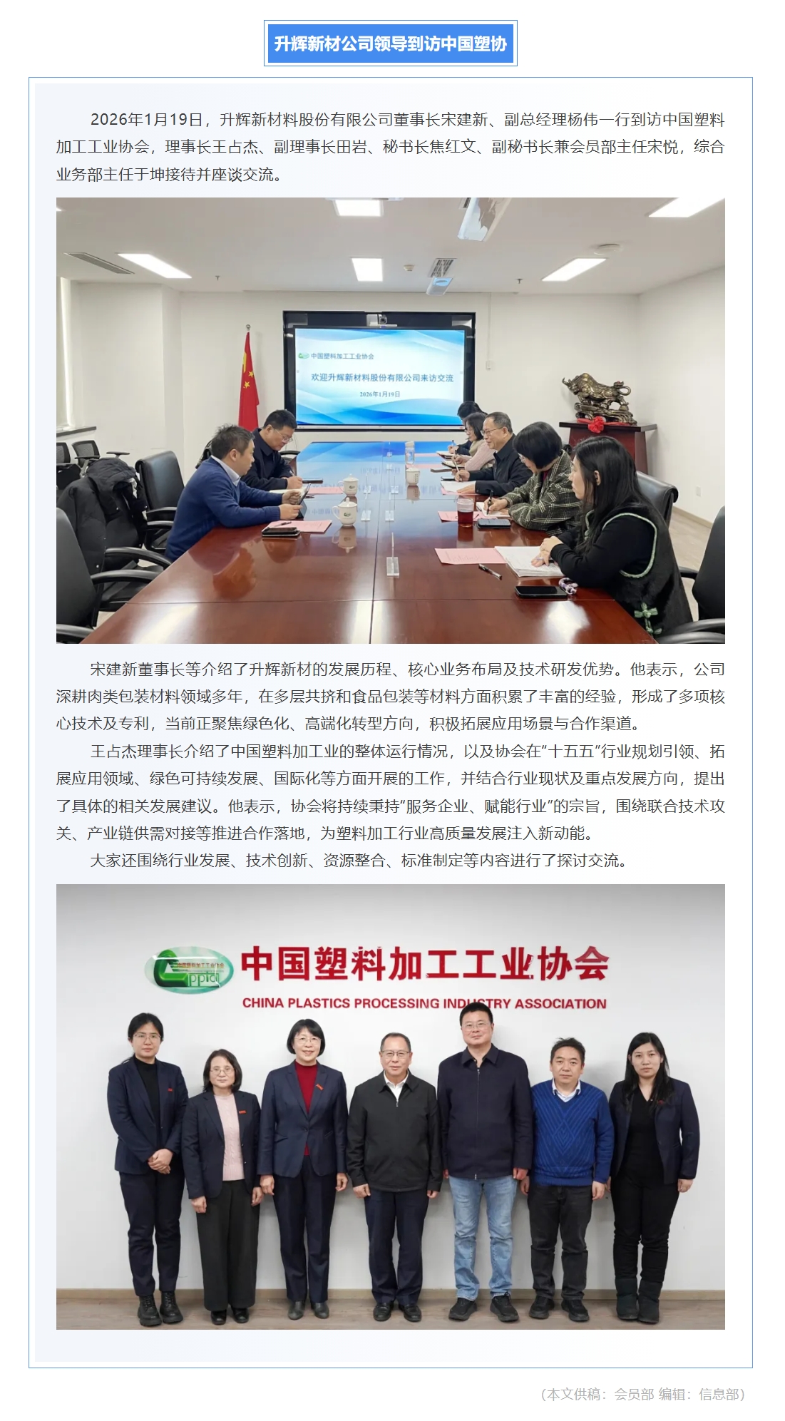 升辉新材公司领导到访中国塑协
