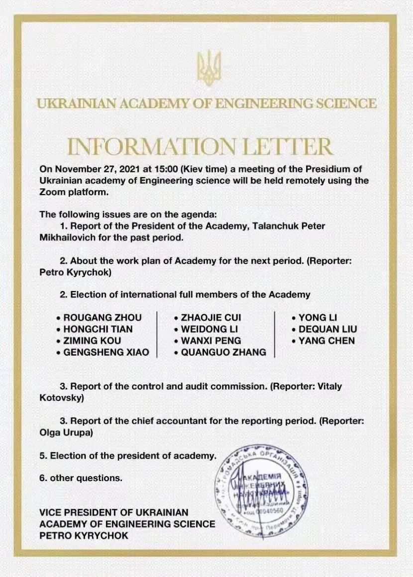 祝贺!中国塑协专家田洪池博士当选乌克兰国家工程院外籍院士