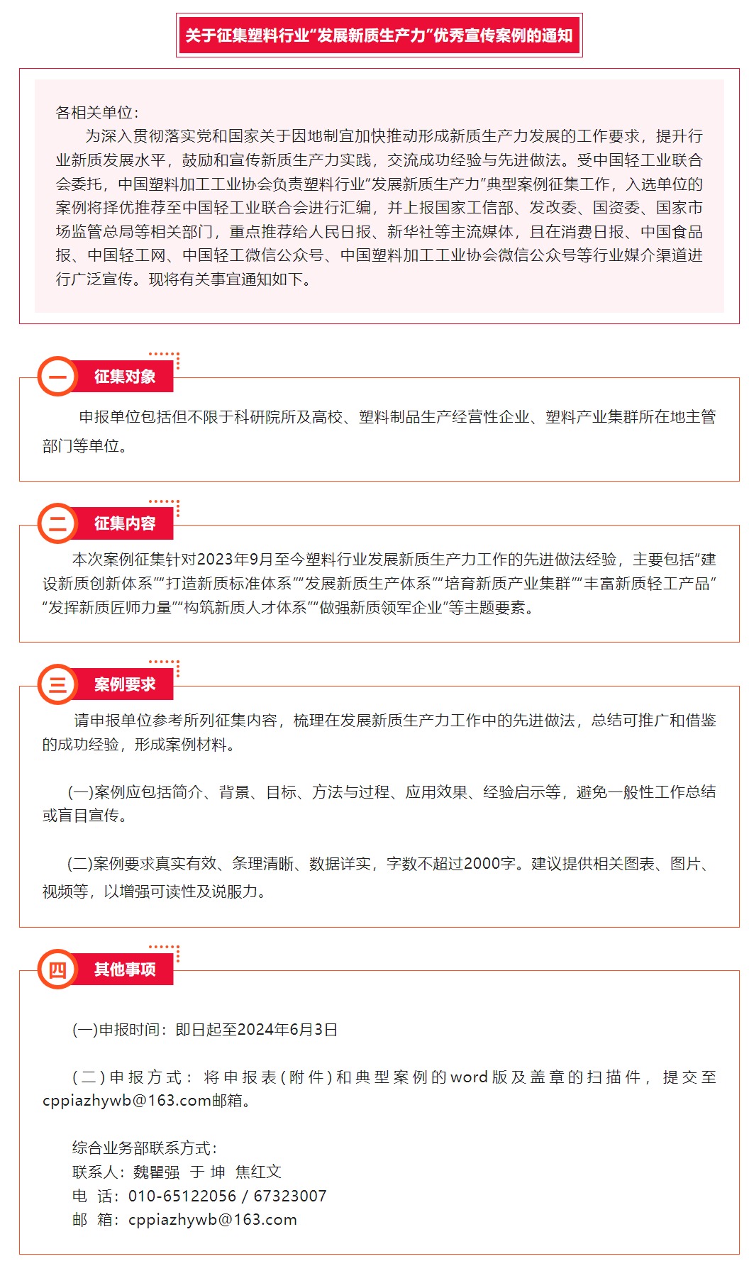 关于征集塑料行业“发展新质生产力”优秀宣传案例的通知
