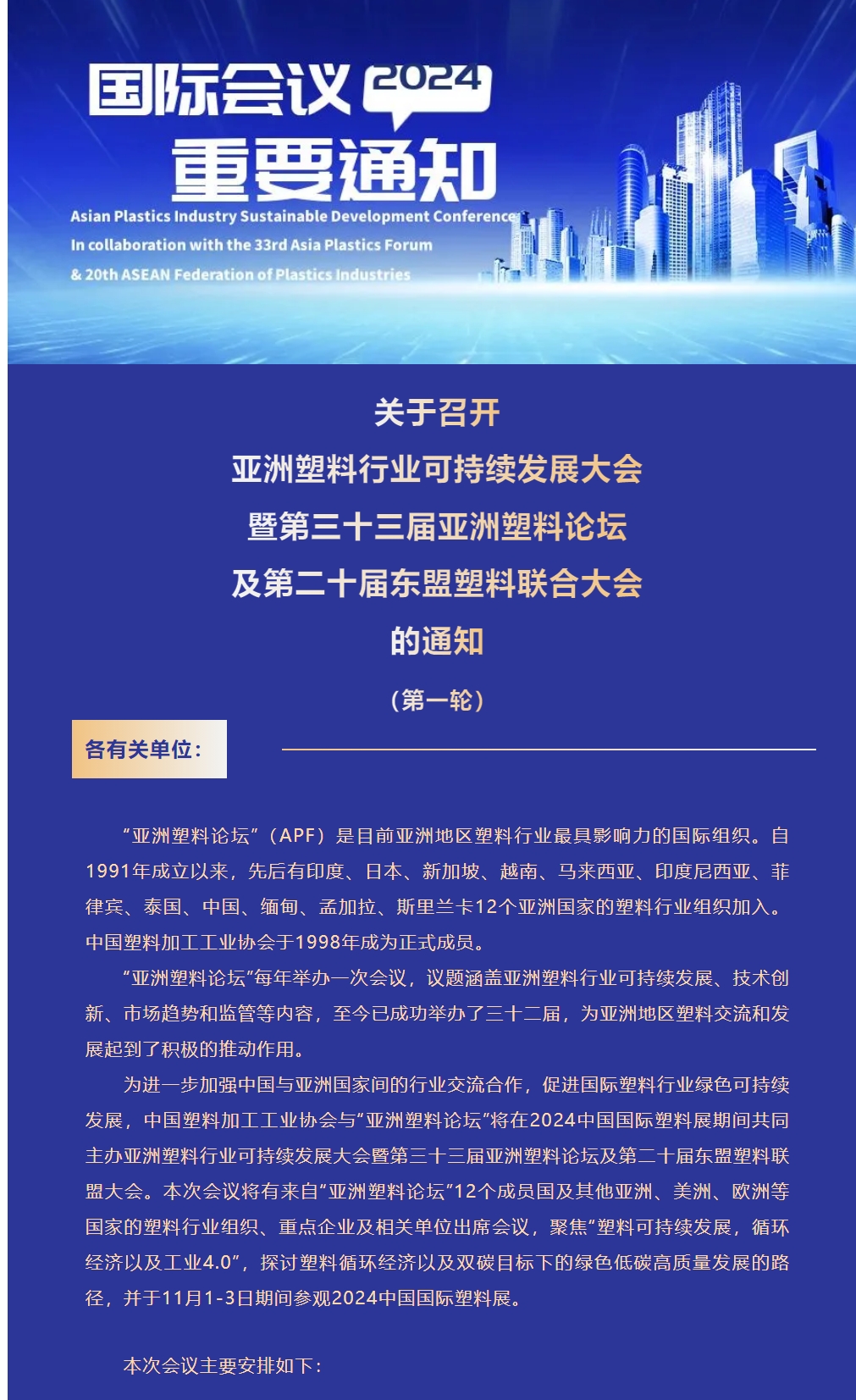 国际会议 | 亚洲塑料行业可持续发展大会暨第三十三届亚洲塑料论坛及第二十届东盟塑料联盟大会
