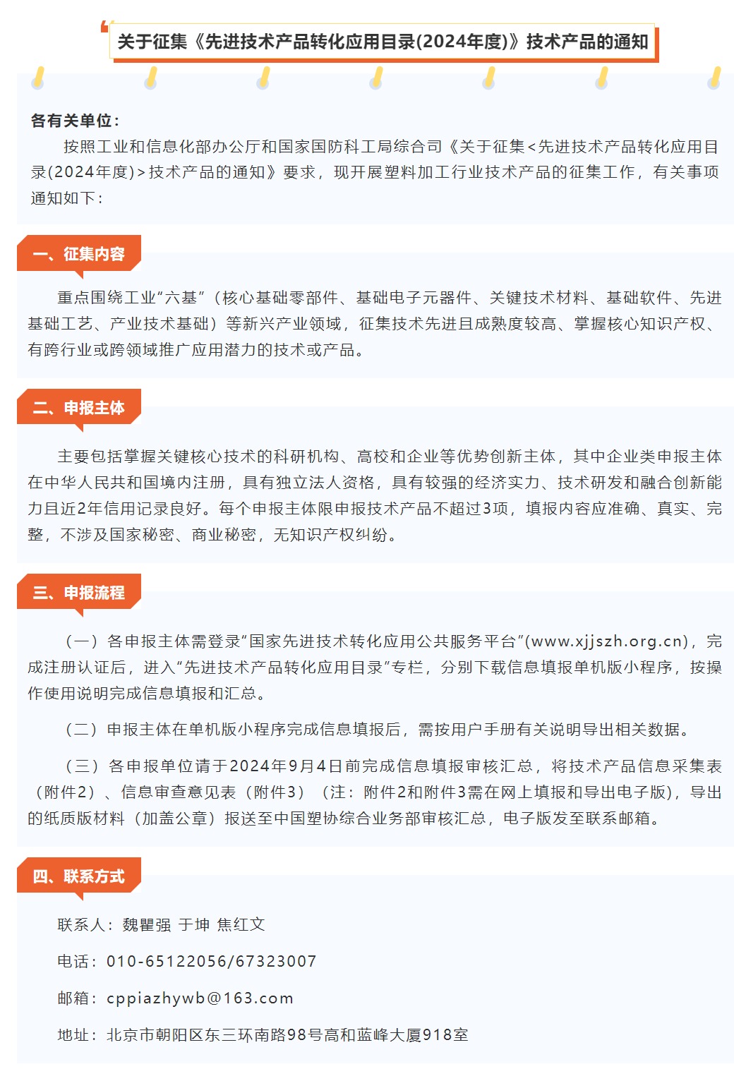 关于征集《先进技术产品转化应用目录(2024年度)》技术产品的通知