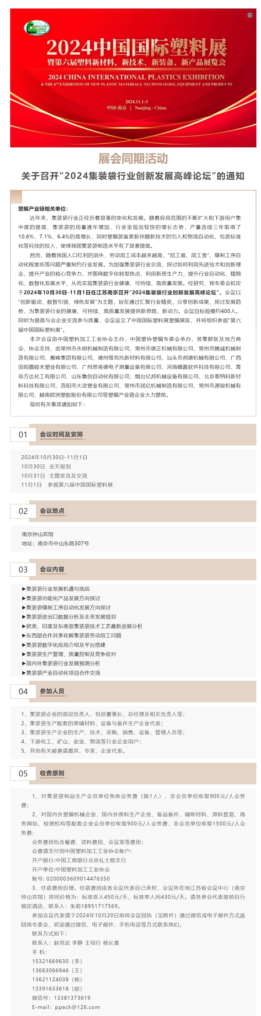 展会同期活动 || 关于召开“2024集装袋行业创新发展高峰论坛”的通知