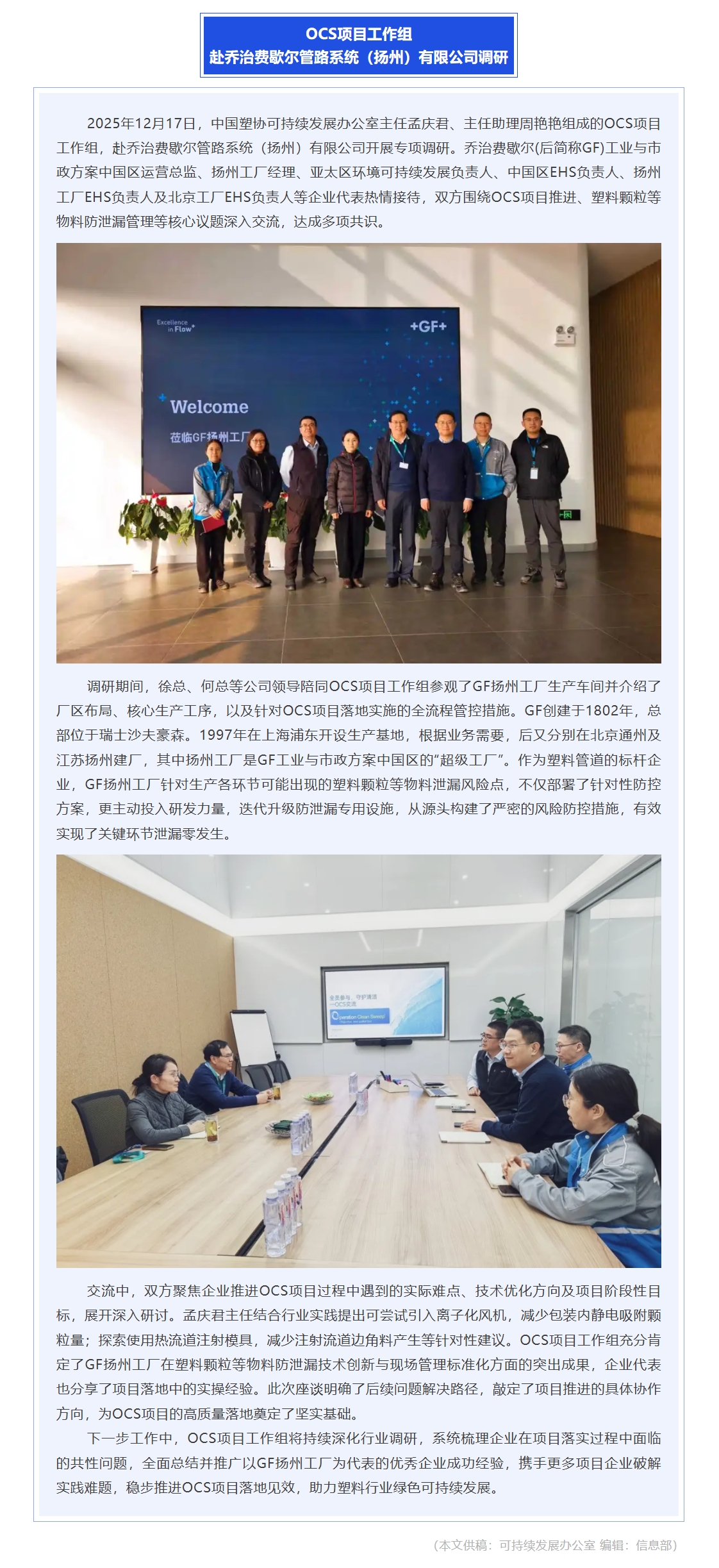 OCS项目工作组赴乔治费歇尔管路系统(扬州)有限公司调研