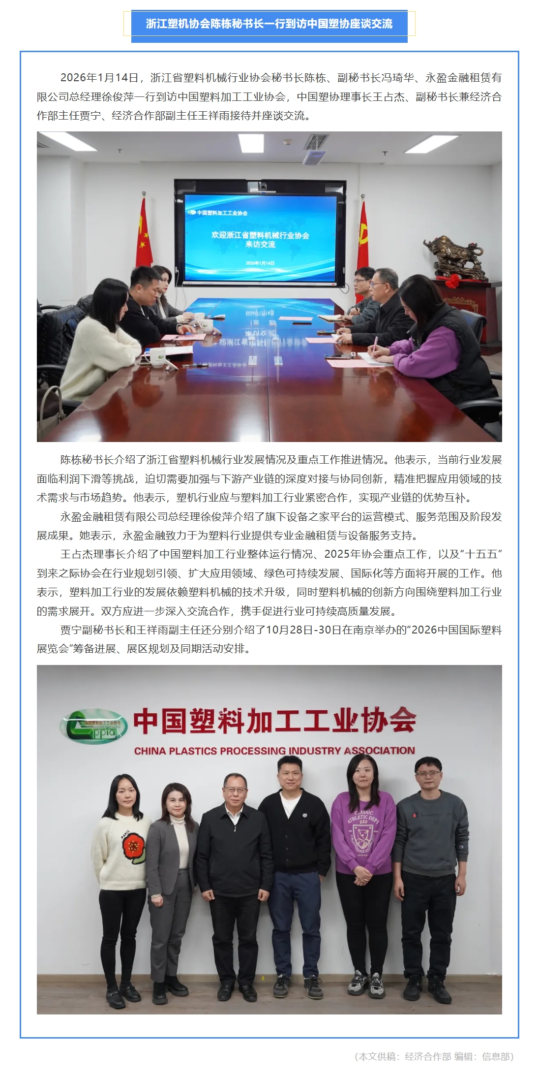 浙江塑机协会陈栋秘书长一行到访中国塑协座谈交流