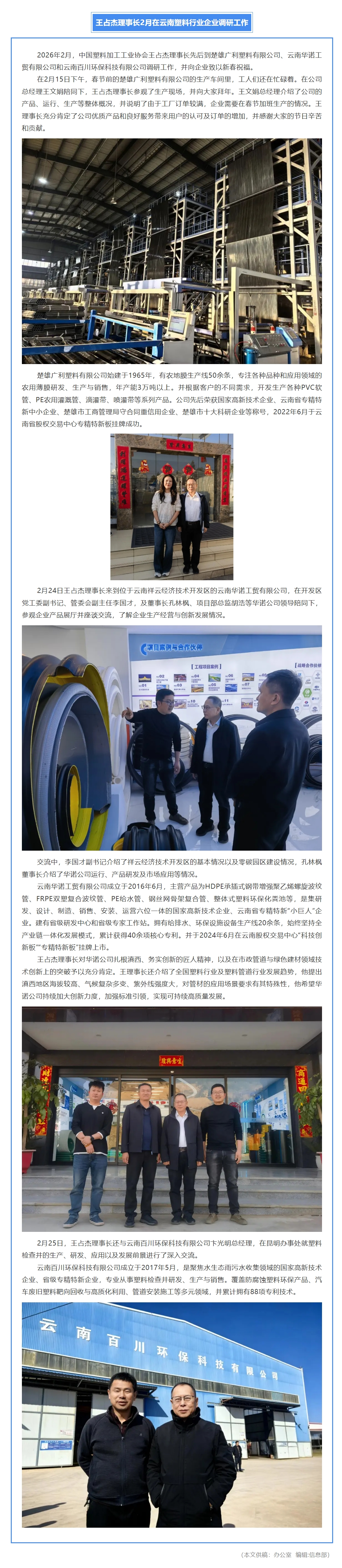 王占杰理事长2月在云南塑料行业企业调研工作