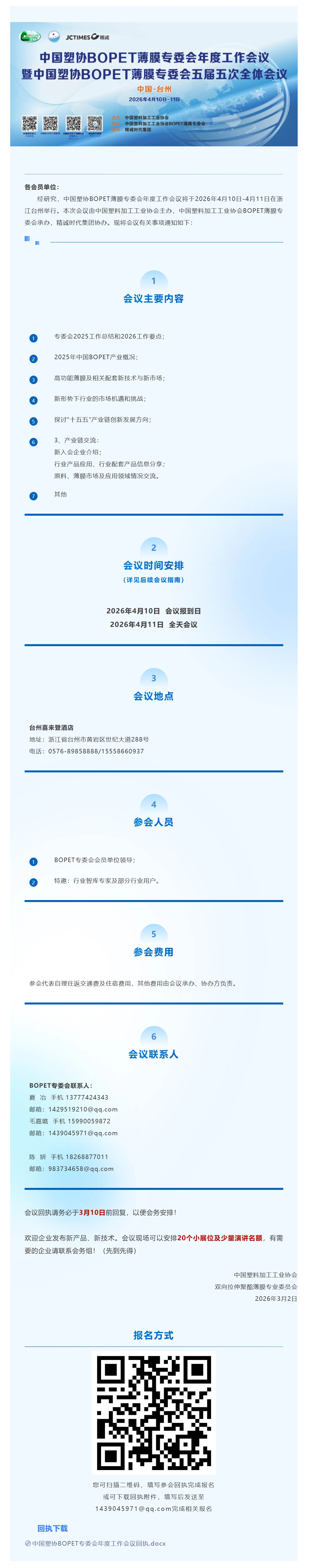 关于召开中国塑协BOPET薄膜专委会年度工作会议暨中国塑协BOPET薄膜专委会五届五次全体会议的通知