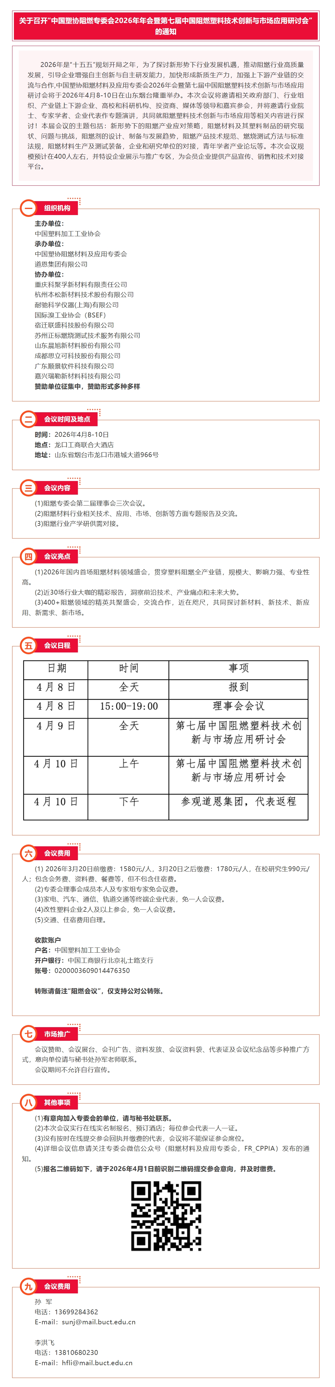 关于召开“中国塑协阻燃专委会2026年年会暨第七届中国阻燃塑料技术创新与市场应用研讨会”的通知