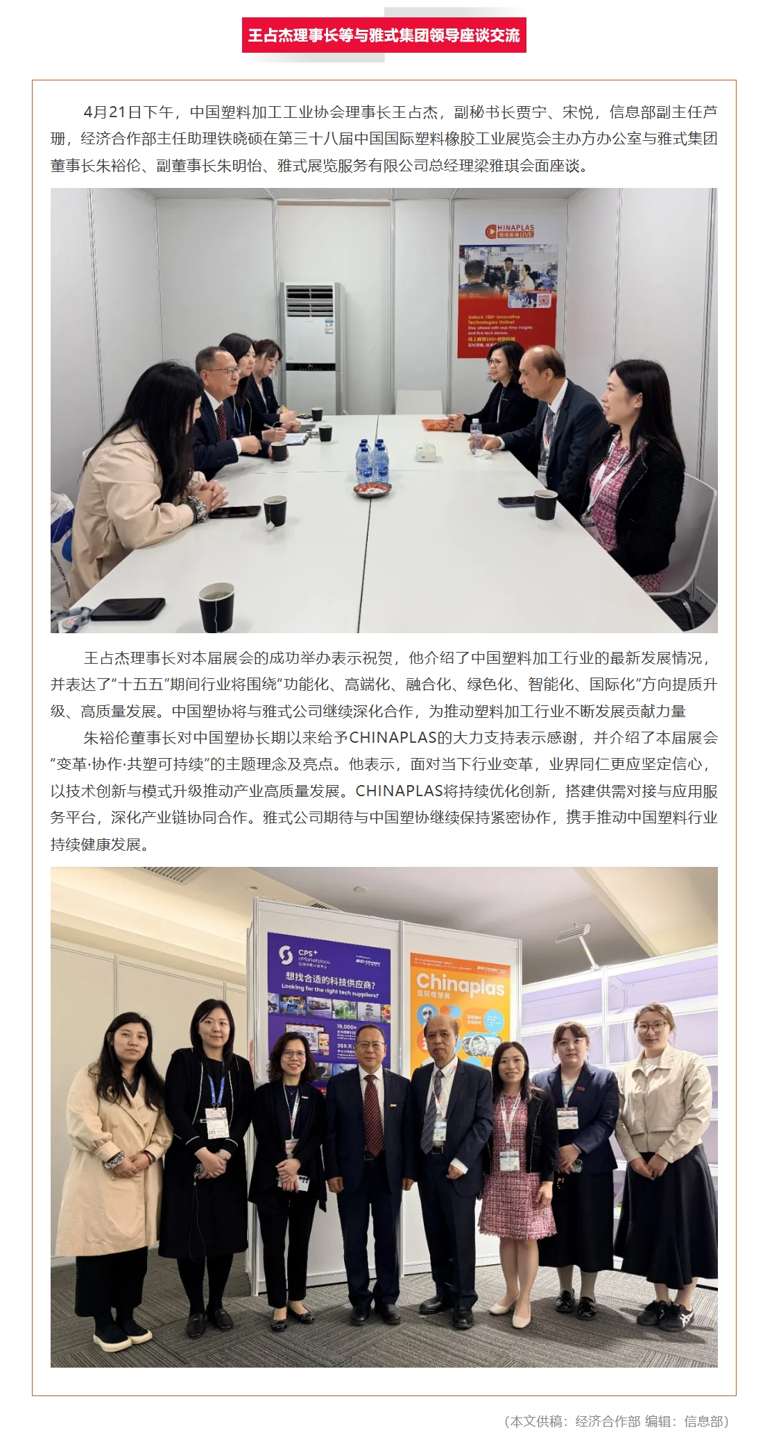 下一篇:王占杰理事长应邀出席“塑料的力量”论坛等第三十八届CHINAPLAS国际橡塑展系列活动