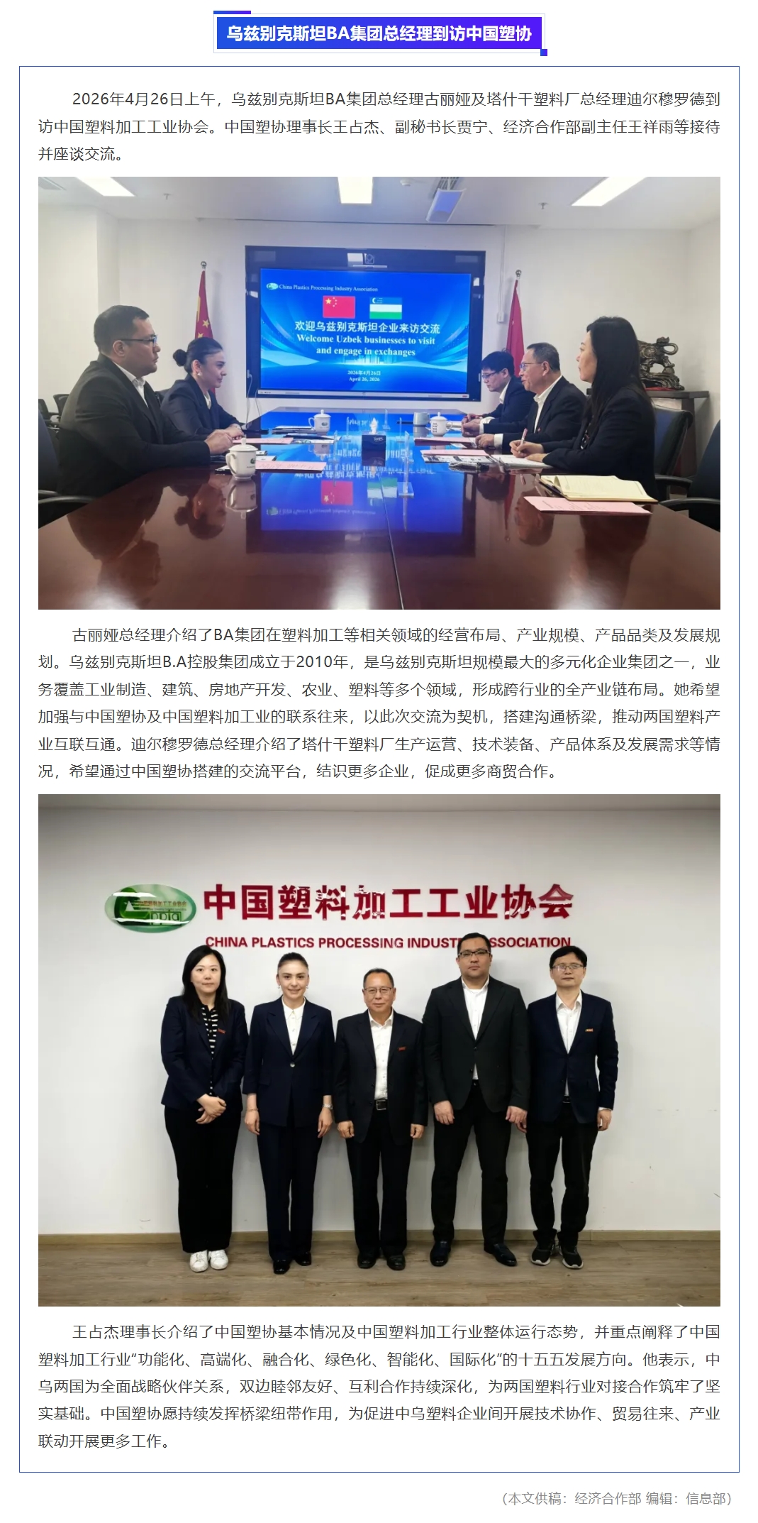 乌兹别克斯坦BA集团总经理到访中国塑协